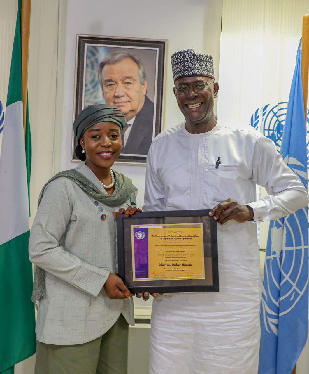 Sabuwar mai bada shawara kan harkokin lafiya ta Majalisar Ɗinkin Duniya, Maryam Bukar-Hassan (Alhan_islam) ta bayyana cewa samar da dauwamammen zaman lafiya a duniya shi ne burinsu.