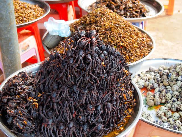 Ko kun san a ƙasar Kambodiya Gizo-Gizo abin cine? Soyayyiyar Gizo-Gizo a can ƙasar Kambodiya fitacciyar abinci ne a garin Skuon, suna hada shi da kayan hadi kaman suga, gishiri, da tafarnuwa domin su soyeta murus.