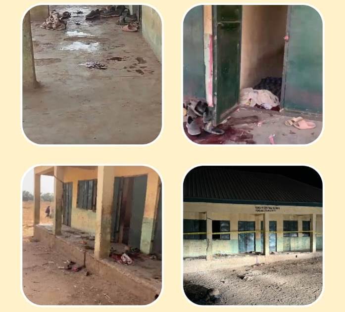 Sanarwar ta ce ana zargin wasu mutane ne uku da suka ziyarci mai makarantar ne suka je da bam ɗin tsangagyar ta Malam Sani Uthman da ke ƙauyen na Kuchibuyi, inda ya tashi da su, ya yi ajalin biyu daga cikinsu, yayin da na ukun kuma ya jikkata.