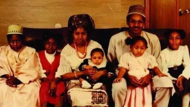 Hoton a lokacin yana tare da marigayiyar matarsa Safinatu da ‘ya’yansu; Fatima, Hadiza da Zulaihat a gidan gwamnati, a fadar mulki ta Dodan Barrack legas.