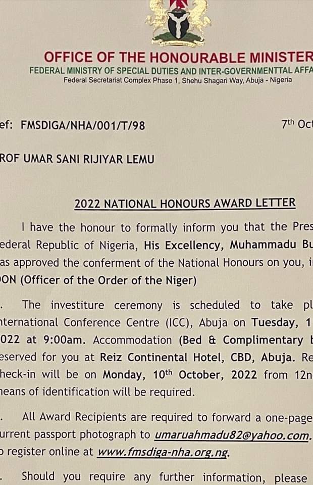 Manyan Malaman addinin Musulunci a Najeriya, Dr. Muhammad Sani Umar Rijiyar Lemo, da Dr. Bashir Aliyu Umar da wasu malaman sun samu lambar girmamawa ta OON.