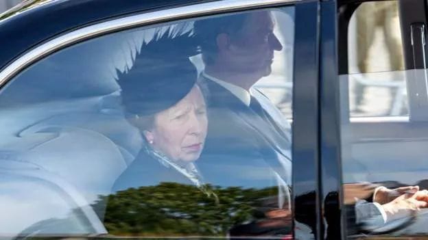 Gimbiya Anne tare da mijinta wanda babban hafsan sojin ruwan ƙasar ne wato Vice-Admiral Sir Tim Laurence sun yi wa gawar sarauniyar rakiya zuwa Edinburgh daga fadarta da ke Balmoral a yankin Scotland.