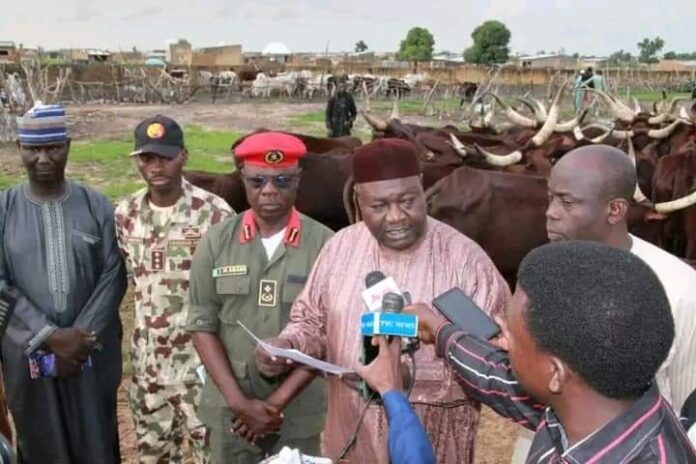 Gwamna Mai Mala Buni ya ce an samar da ingantattun matakai don tabbatar da zaman lafiya da bin doka da oda a jihar Yobe yayin da jami’an tsaro suka kwato tare da mayar da shanu 33 da aka sace ga masu su.