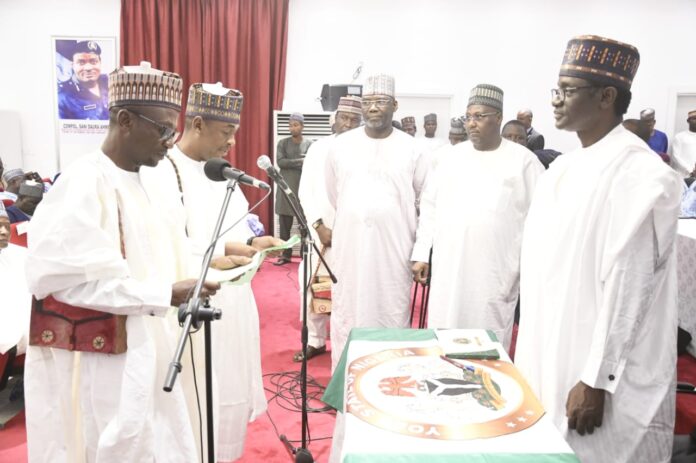 Gwamnan jihar Yobe, Alhaji Mai Mala Buni, ya rantsar da sabbin sakatarorin dindindin guda biyu, shugabanin hukumomi, mai binciken kuɗi da kuma membobi na dindindin a jihar.