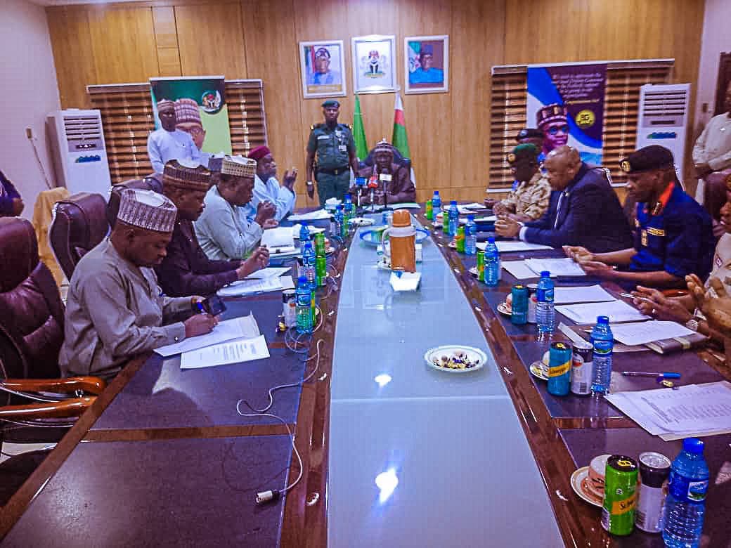 Gwamnan jihar Yobe Alhaji Mai Mala Buni ya jagoranci taron majalisar tsaro na jiha a fadar gwamnati da ke Damaturu, a yau Alhamis. An gudanar da taron ne da shugabannin hukumomin tsaro a daf da shigowar watan Azumin Ramadan.