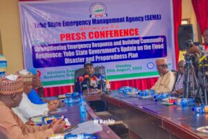 An bayyana hakan ne yayin wani taron manema labarai da aka gudanar a ranar Litinin mai taken: “Amsar Agajin Gaggawa da Gina Juriyar Al’umma: Sabuntawar Gwamnatin Jihar Yobe kan Shirye-shiryen Tattalin Arziki da Bala’in Ambaliyar.”