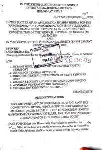 Abba Hikima ya kai ƙarar ne a babbar kotun tarayya da ke Abuja, inda ƙarar ta haɗa da Ministan Abuja da Gwamnatin Najeriya da Darakta Janar na DSS da kamu sufetan ƴan sandan Najeriya.