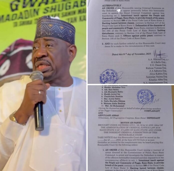 Ya ce masu shigar da ƙorafin sun hada da wasu fitattun malamai, ‘yan kasuwa da shugabannin al’umma, wadanda suka zargi Abbas da yin maganganu masu cike da raini da tunzuri ga mazauna Fagge.