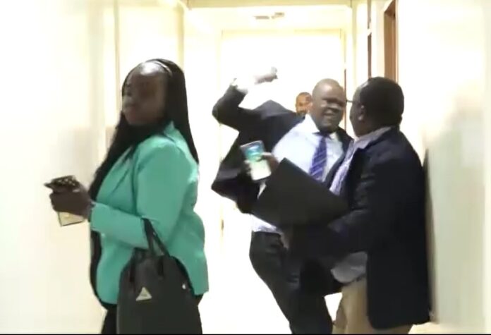 Robert Asembo wanda ke wakiltar matar wacce kuma ma’aikaciyar gwamnati ce, ya yi wa tsohon mijin nata duka da mari a wajen zauren kotun Alƙali Robert Mbogo.