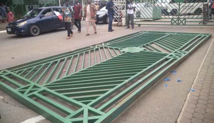 Da farko ‘yan sanda ɗauke da makamai ne suka kulle kofar, bayan wani kazamin rikici da ya ɓarke tsakanin masu zanga-zangar da jami’an tsaro, wanda daga ƙarshe jama’a suka ci karfinsu.