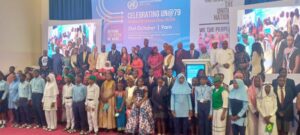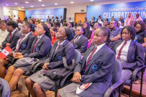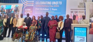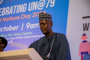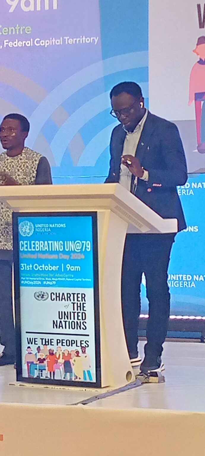 Ƙaramin Ministan Ci-gaban Matasa, Ayodele Olawande, ya gabatar da jawabin, a lokacin taron taya Majalisar Ɗinkin Duniya cikar ta shekaru 79 da samar da ita.