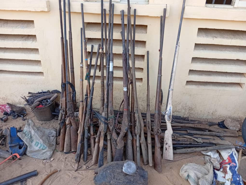 Daga cikin abubuwan da aka kwato a wajen samamen akwai: “Bindigu tara da aka kera da hannu, bindigu na gargajiya guda 27, manyan bindigu guda 37, babura guda hudu, da kuma kudi na jabu dala guda 12.”
