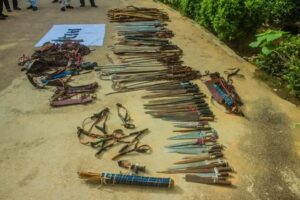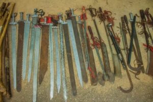 Kwamishinan ‘Yan Sanda na jihar, CP Ibrahim Adamu Bakori, wanda ya gabatar da jawabi ga manema labarai a Kano yau Litinin, ya ce an kama wadannan mutane ne da makamai da kayan tada rikici da suka hada da: