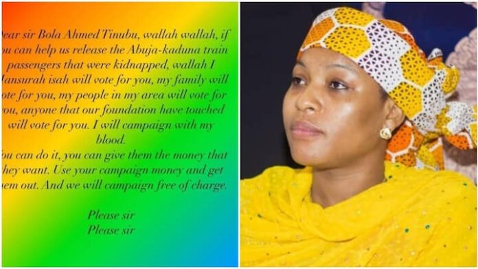 Mansurah ga Tinubu; Zan yi maka kamfen da jinina, kyauta, in ka ceto fasinjojin jirgin ƙasan Abuja zuwa Kaduna, da har yanzu suna hannun masu bindiga.