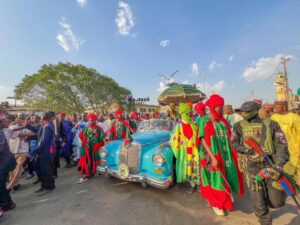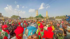 Duk da haka Sarkin ya fito daga cikin gidan sa akan rakumi zuwa fadarsa domin karbar gaisuwa ga hakimai da dakatai da sauran jama’a.