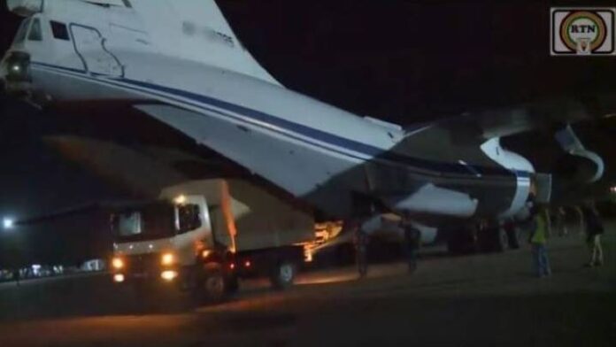 Wani bidiyo da RTN ya watsa ya nuna yadda wani jirgin ɗaukar kaya na soji ya sauka a ƙasar inda mutane suka zagaye shi.