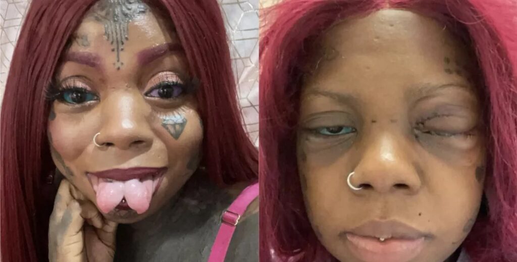 Matar da ke da sha’awar gyaran jikin ta wannan salon ta yi ado da dama kan harshen ta inda ta raba shi biyu. ‘Yar asalin Belfast ce da ke zaune Ireland ta Arewa kuma tana samun kulawa ne a asibiti inda take jinya sakamakon adon da tayi a idanunta, kuma yanzu ta yi iƙirarin cewa tana cikin haɗarin kamuwa da ciwon ido.