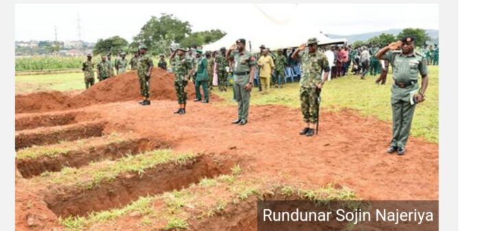 An binne sojojin ne a maƙabartar Guards Brigade da ke Maitama , Abuja, a cewar sanarwar da kakakin rundunar, Kyaftin Godfrey Anebi Abakpa. Cikin waɗanda aka binne har da Kyaftin Attah Samuel.